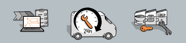 Our assembly vehicles are small moving workshops including the necessary test and measuring equipment. Our fitters are experienced specialists and not tied to a converter manufacturer or type. Regardless of location and time, we are your installation partner and support your maintenance, day, night and weekend. Numerous production companies reduce their own electrical maintenance. Our assembly teams in your factory are also happy to assist with routine tasks and minor repairs.